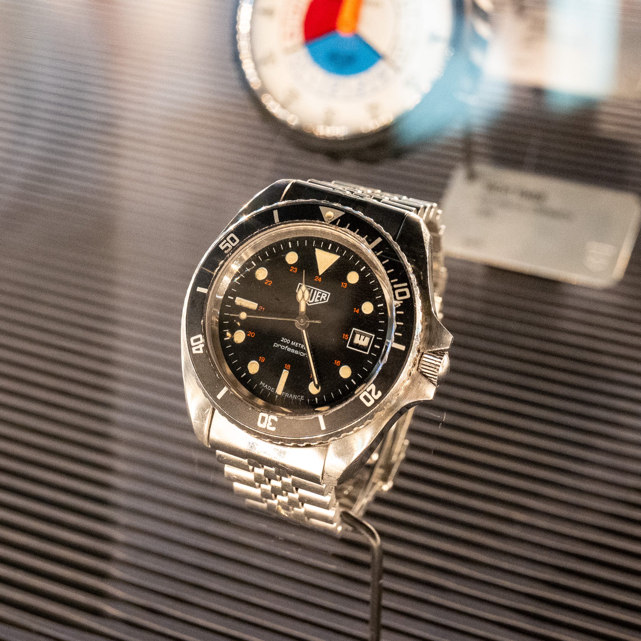 Before Watches & Wonders in April, I took a short trip to La Chaux-de-Fonds to visit TAG Heuer. As you enter the manufacturer, there’s a small museum filled with archival watches, laid out as a timeline stretching back to the brand’s founding in 1860. There are a bunch of early pocket watches and chronographs, but the real highlights come from Heuer’s racing ties in the 1960s and 70s. I’m also a bit of a sucker for its Profession Divers from the 80s and 90s—I’ve bought a handful over the past year or so.1