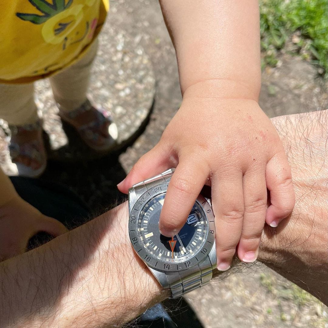 "Being a dad hasn't changed my philosophy on wearing watches. Some people, when they have kids feel like they can't wear certain watches because life is messy. I've always been the opposite. I love patina, character, and life happening to my watches. Having children lends itself to patina happening to your watch at an accelerated rate. With kids, it's reconnected me to my original thought process, which has always been to buy a great watch as a companion for life — through life's ups and downs.