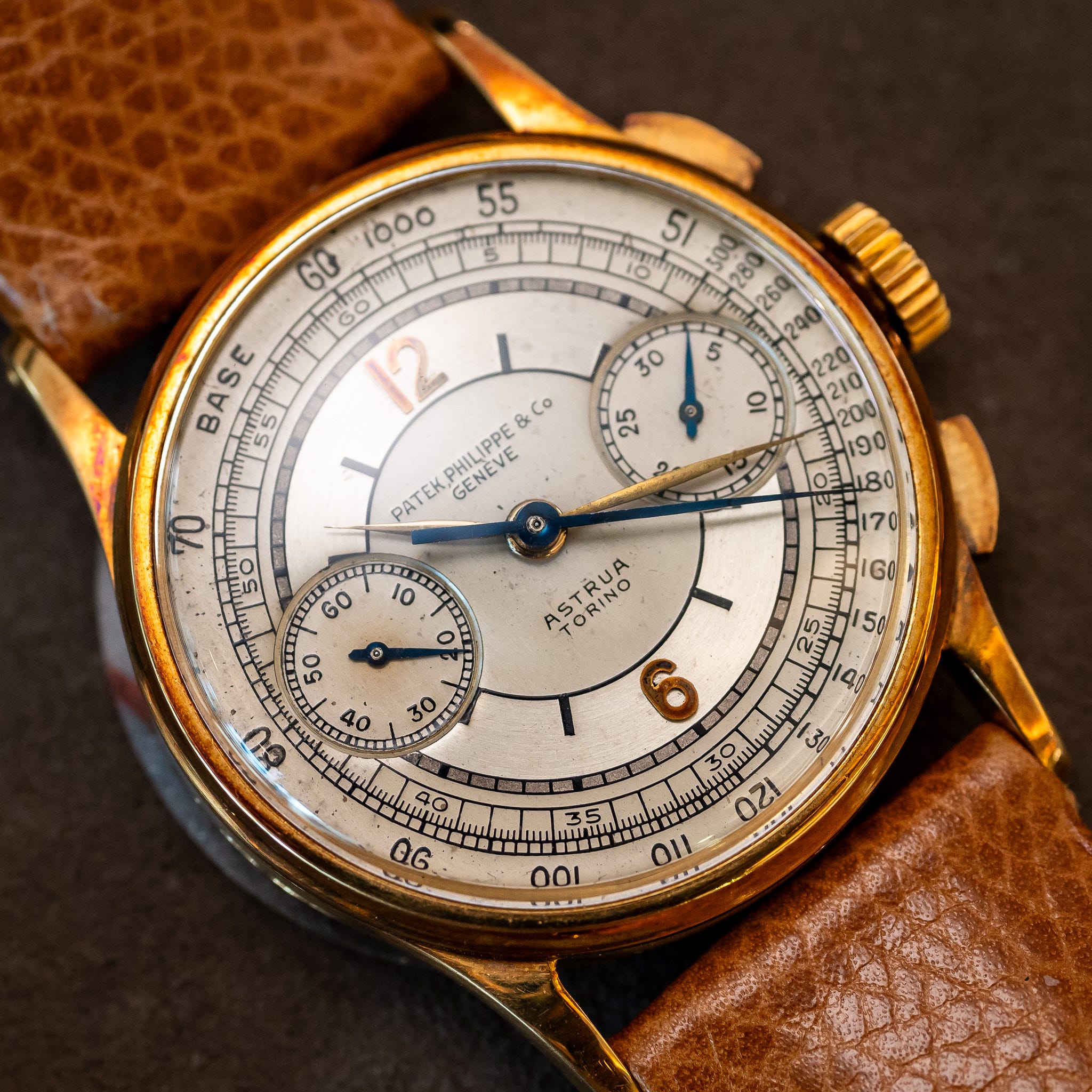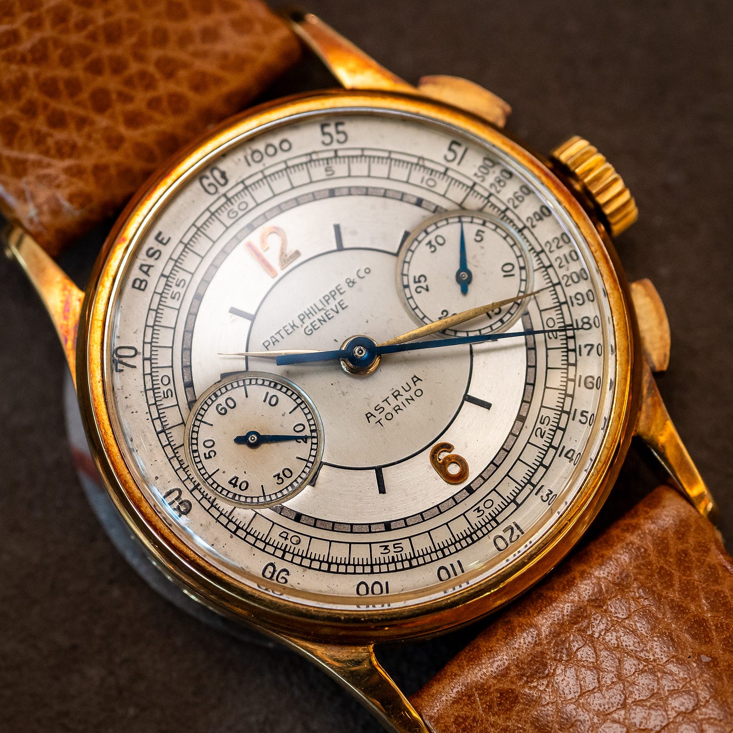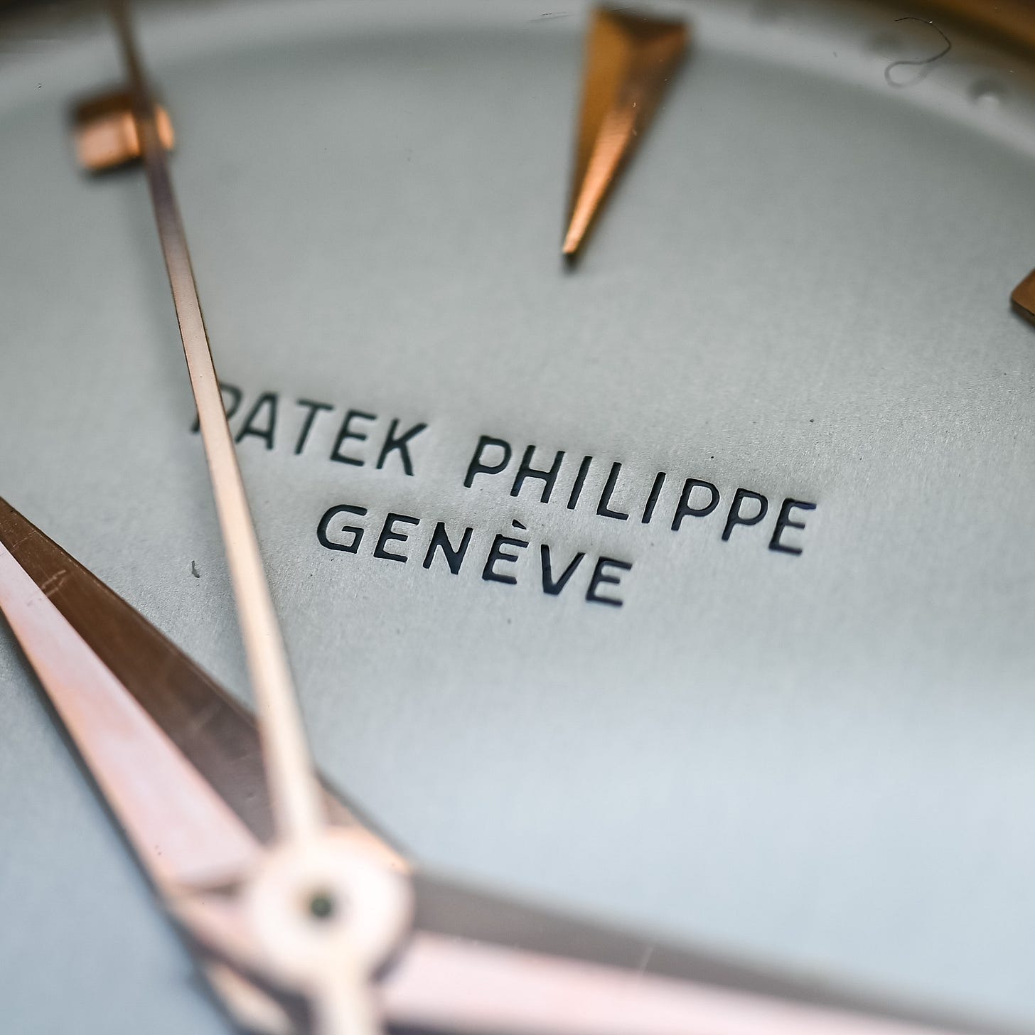 Blown A: The top bar of the “A” in PATEK PHILIPPE is lost