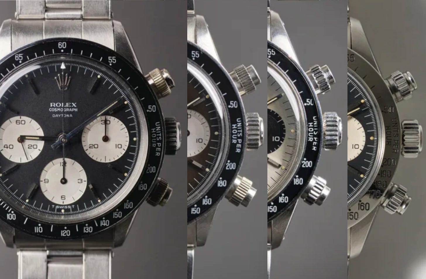 Mark 1 bezel: The first bezels have “275” marked on the tachymeter—later bezels skip the 275.
