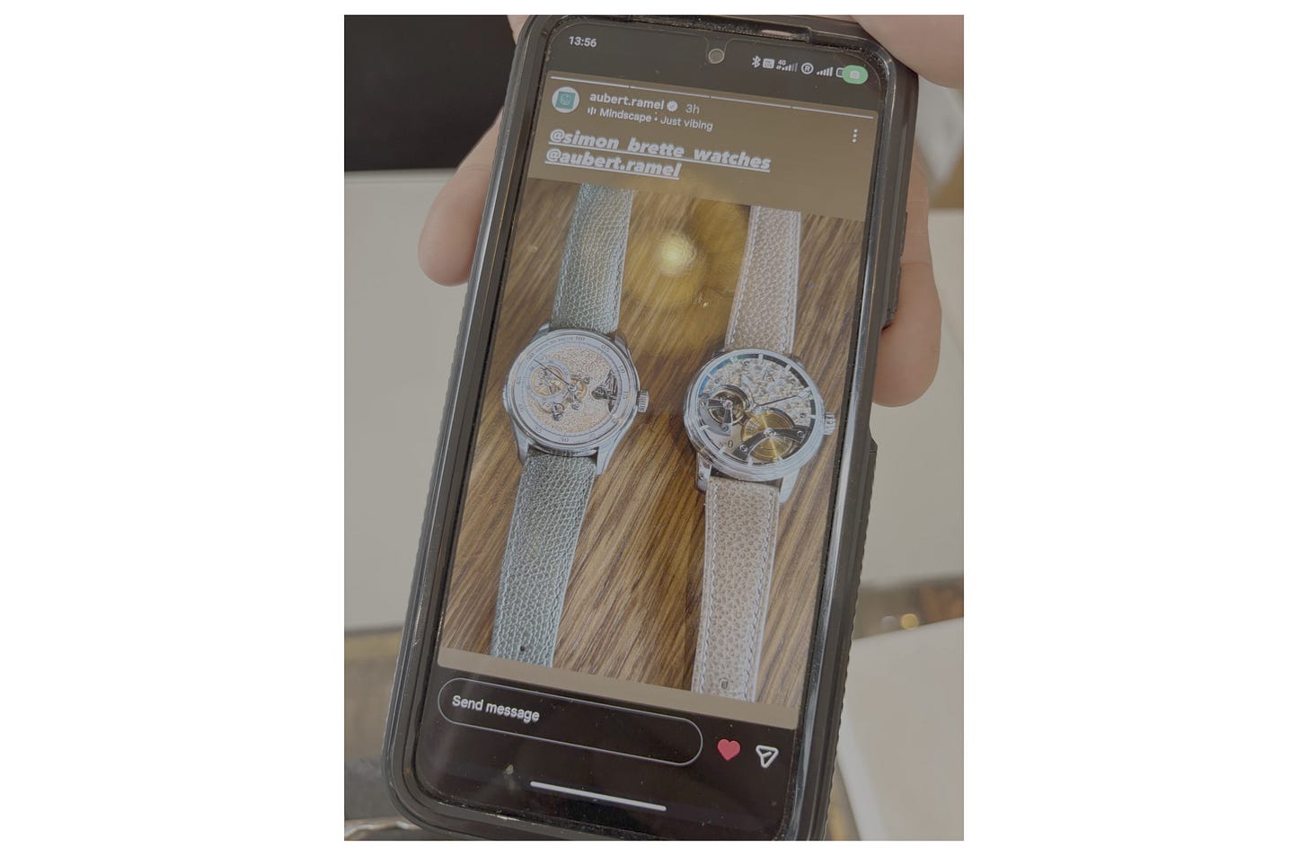 It turns out the eponymous founders of Aubert & Ramel were there showing a prototype of their Ourea. The pair of watchmakers won the 2024 FP Journe Prize and worked for Simon Brette for about a year before starting their own brand.
