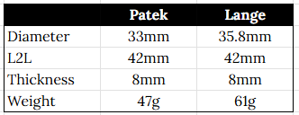 The case: The 1815 Up/Down is 35.8mm and noticeably better than the Patek: