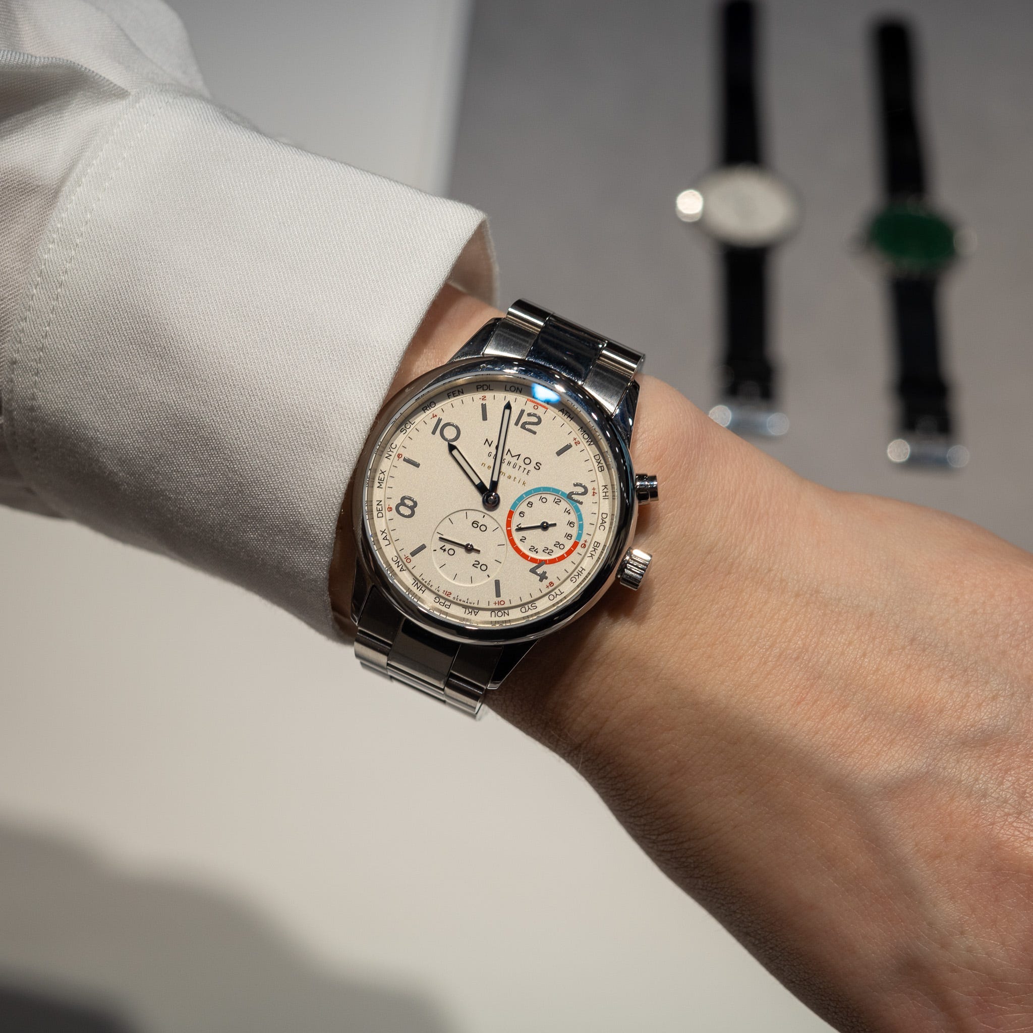 The new Nomos Club Campus Worldtimer with a silver-plated white dial is easily the best of the standard collection now. My biggest complaint about last year’s hit release was that the non-limited sunburst dials didn’t feel very Nomos. That’s fixed! The white dial is also cheaper.