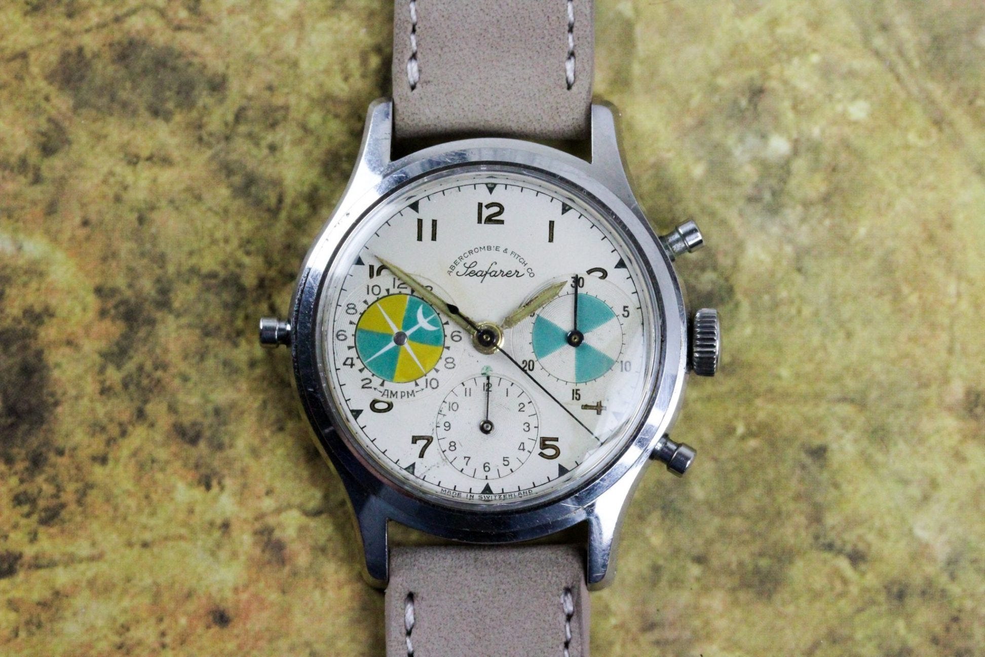 I love Abercrombie & Fitch Seafarers, and there’s a great A&F Seafarer from Menta Watches up right now. Made in collaboration with Heuer, A&F had more of an outdoor-adventure vibe back in the day, and less of that put-nearly-naked-teens-on-shopping-bags vibe. Their collabs with Heuer resulted in some truly special watches, like this one. Further, the movement used in these watches is the renowned Valjoux 72, the same movement used in the Rolex Daytona, Heuer Autavia, amongst others ($22,000).