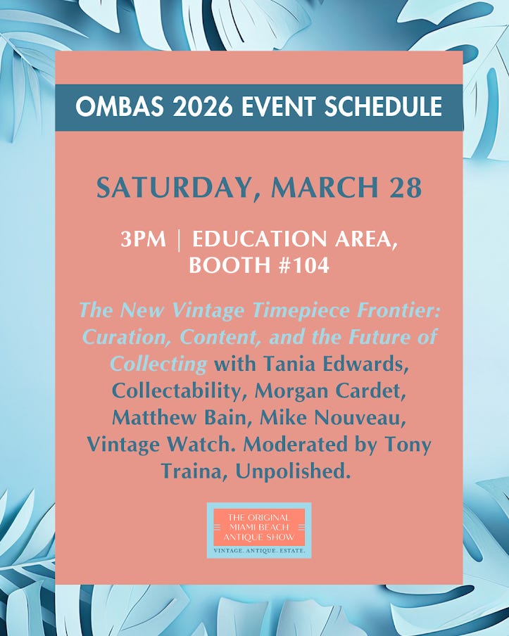 Miami Beach Antique Show—panel and free tickets: I’ll be in Miami at the Miami Beach Antique Show this weekend, where I’m also moderating a panel with Tania Edwards (Collectability), Morgan Cardet (Matt Bain), and Mike Nouveau on Saturday at 3pm. Come say hey if you’re around. I also have a code for free tickets that I’ll leave in the comments of this post (not an ad, it’s just a fun show!).