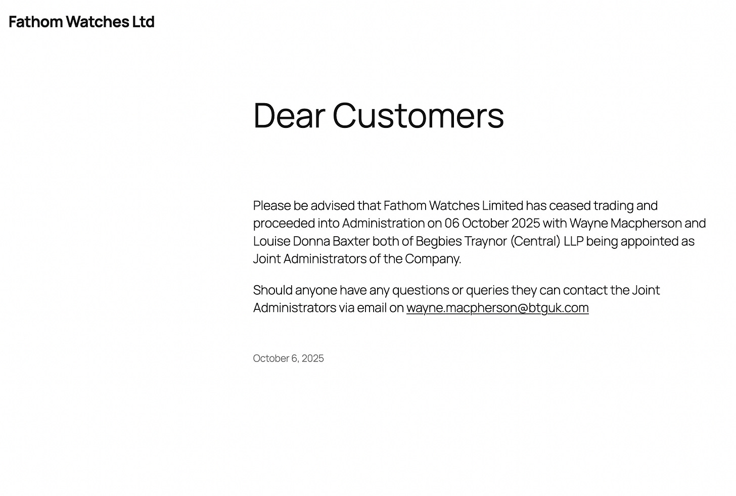 A few weeks ago, I started getting texts about Fathom Watches, a vintage dealer in London that had suddenly gone into administration. It’s a legal process in the U.K. similar to bankruptcy in the U.S. for insolvent companies that places them under the control of an independent administrator to either save the business or divvy up whatever’s left to its creditors.