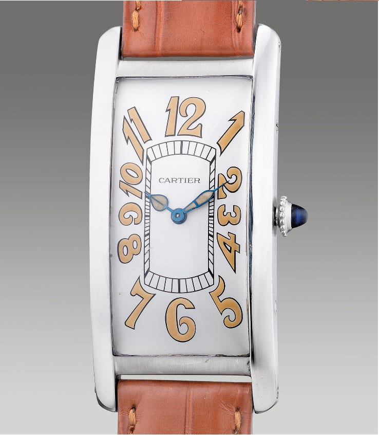 On Thanksgiving, that same watch, a white gold Cartier Tank Cintree with luminous Arabic numerals sold for about $290k at Phillips Hong Kong. The catalog entry makes heavy reference to the Leach/Astaire Cintrée, saying that example is the only known luminous dial in yellow gold, and this example at Philips is the only known in white gold.